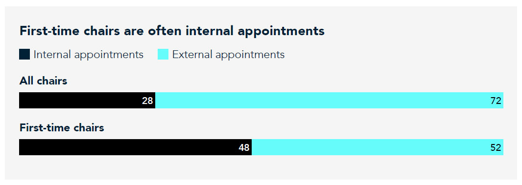 But it would be wrong to assume that an internal appointment is a more predictable choice. Many of the internally promoted chairs we spoke to said that their greatest challenge in taking the role was to put their stamp on the role in ways that may be different from the board’s expectations.