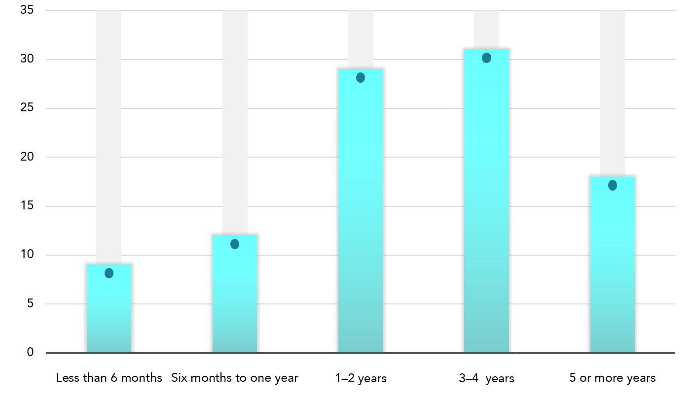 Notably, more than half of the executives we surveyed, 52%, have been in their role for less than three years, and nearly three-quarters, 74%, are in a role that has existed at their company less than five years. Longevity in a role could suggest a few different things, a high level of turnover, perhaps, or a change in strategic priorities resulting in demand for a first-time executive leader responsible for the function, moving the responsibility from a manager or director.