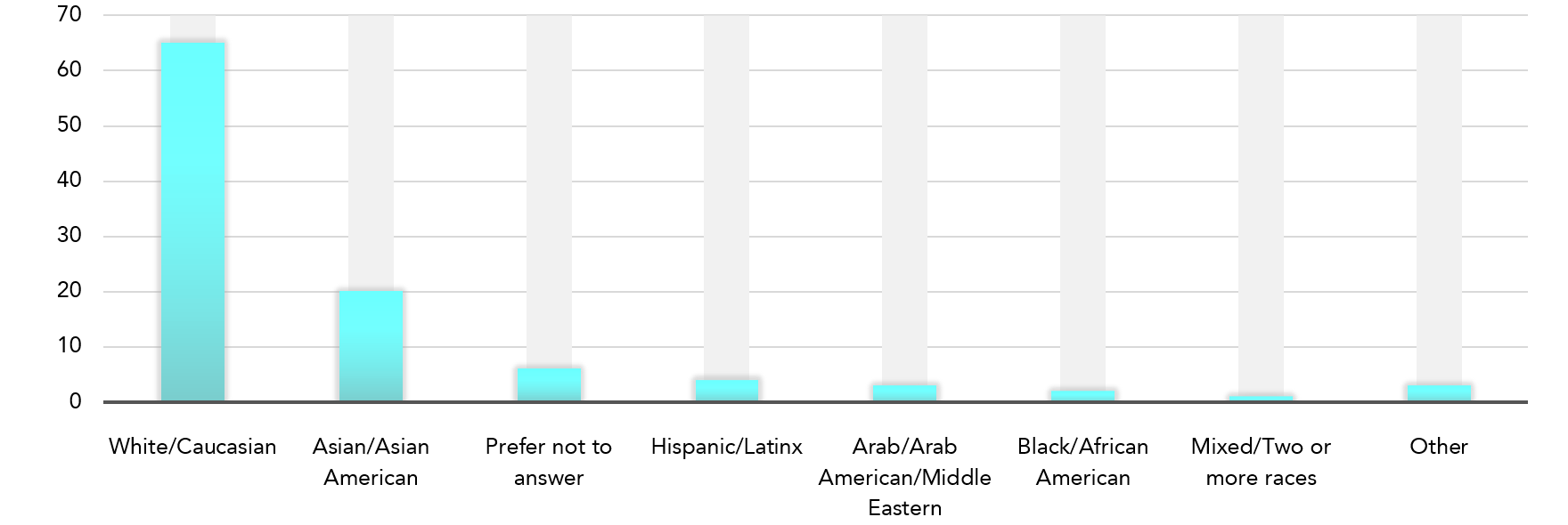 Most respondents to this survey were male and white, although the executives who responded in the United States are markedly more diverse than those in Europe. While the share of non-white executives was 45% in the United States (with Asian and Asian Americans the most well-represented, at 33%), the share of non-white executives was only 19% in Europe. The share of women in these roles, while low everywhere, was in the United States double that of those in Europe. (For a full breakdown of the demographics by region, see pages 7 and 8 of the full report.)
