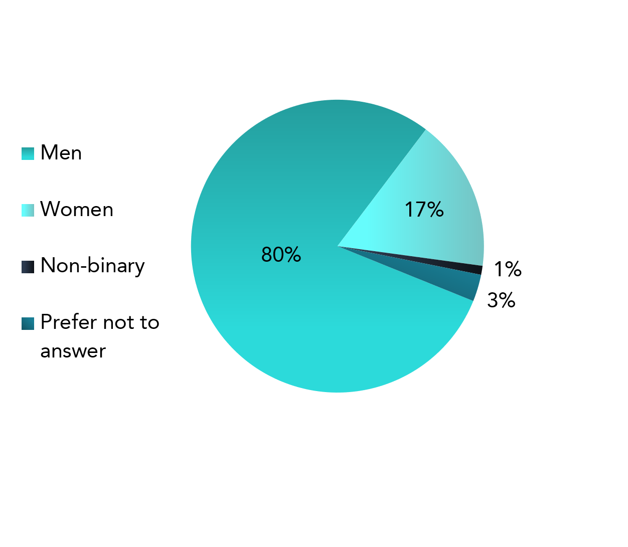The data, analytics, and artificial intelligence function is historically one that has been lacking in diversity, though we have observed a number of initiatives to introduce greater diversity in terms of gender, race and ethnicity, and sexual orientation. The majority (65%) of data scientists in the United States are men.1 The ethnicity statistics are even less promising: in the United States, Black professionals represent just 5% of the tech workforce and 3% of tech executives.2