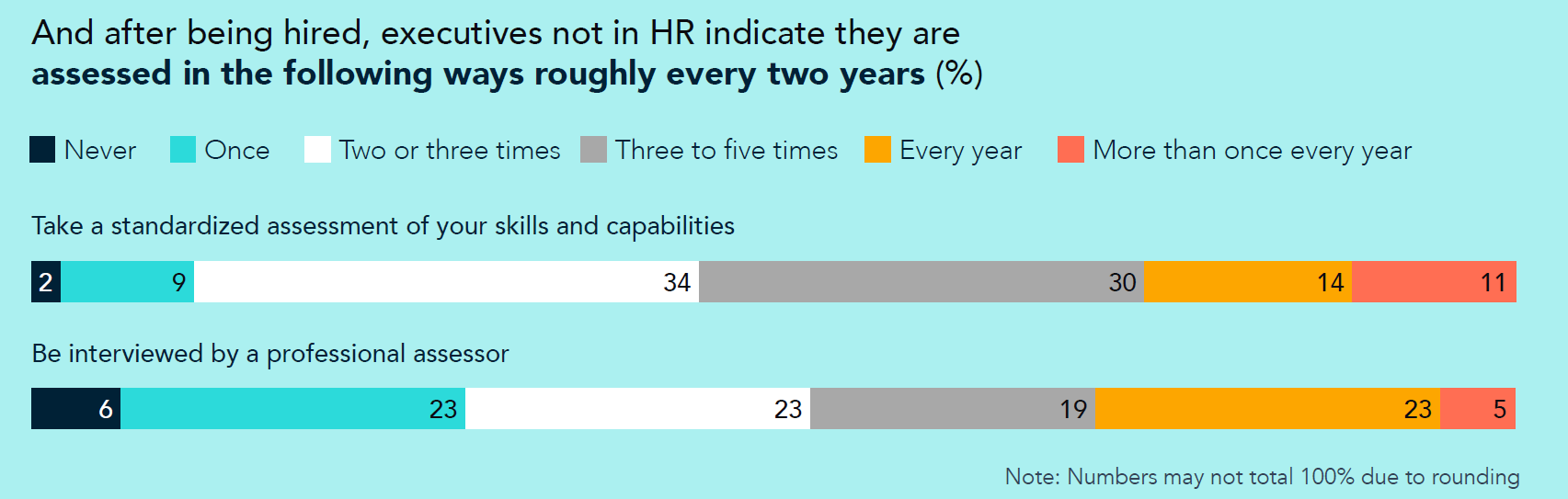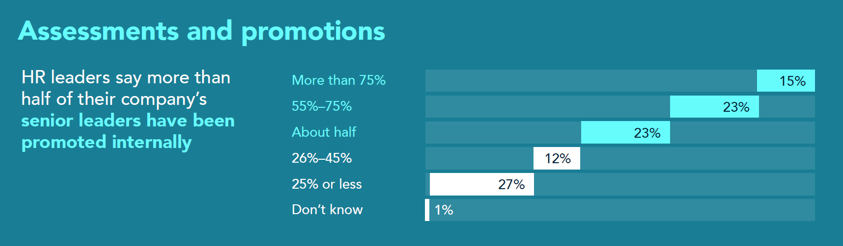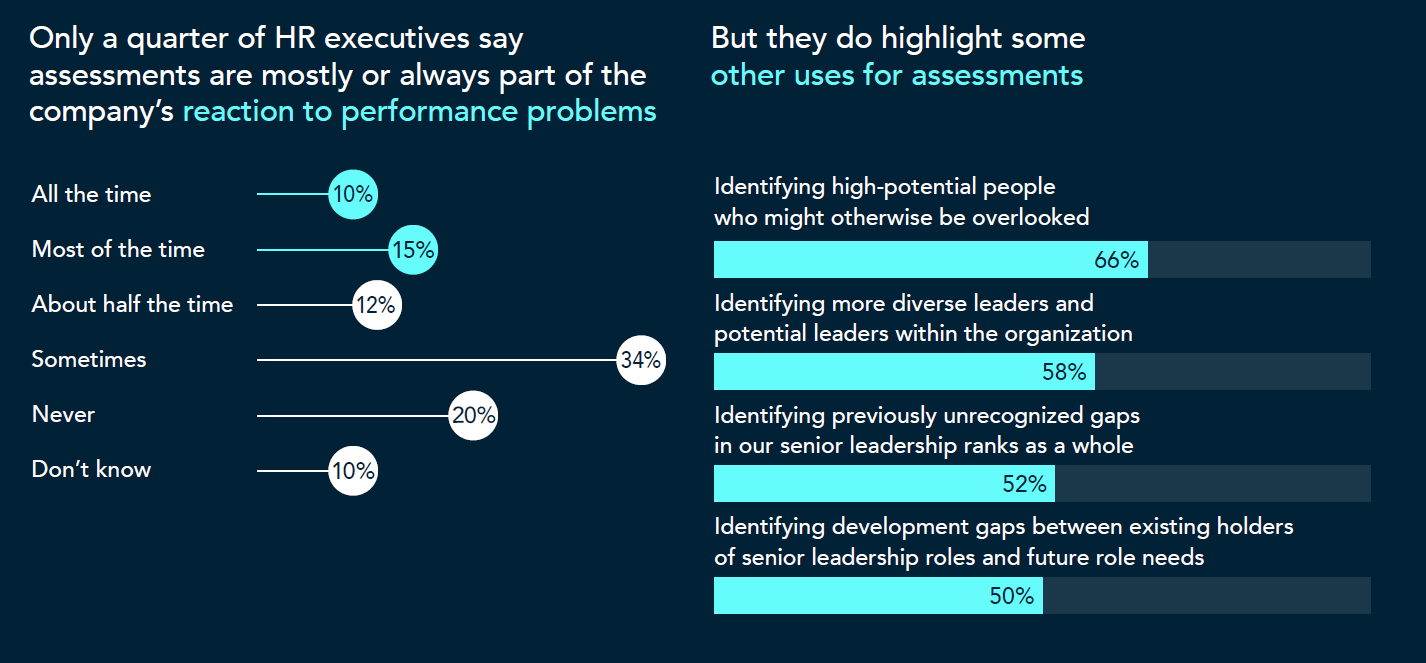 - Given the high share of executives being promoted internally, and executives’ own view that assessments don’t get enough weight should assessments play more of a role in those decisions?