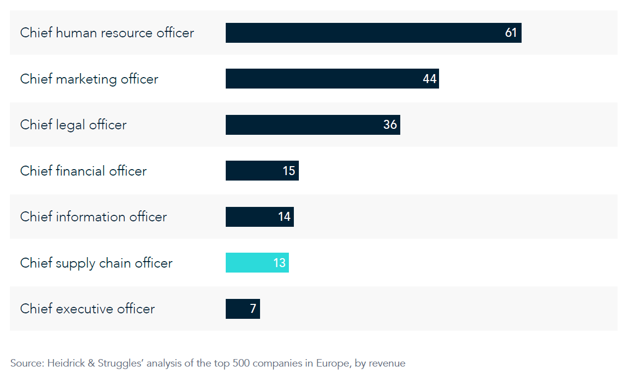 At Europe’s top 500 companies by revenue, as of May 2023, 172 have chief supply chain officers and only 22 (13%) are women. This makes it the second-least diverse leadership role out of the seven we track, ahead only of the CEO role.